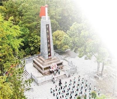 江西省赣州市会昌县希望小学的师生来到革命烈士纪念碑前开展“清明祭英烈,薪火永相传”主题祭扫活动。 刘兆春摄(人民图片)