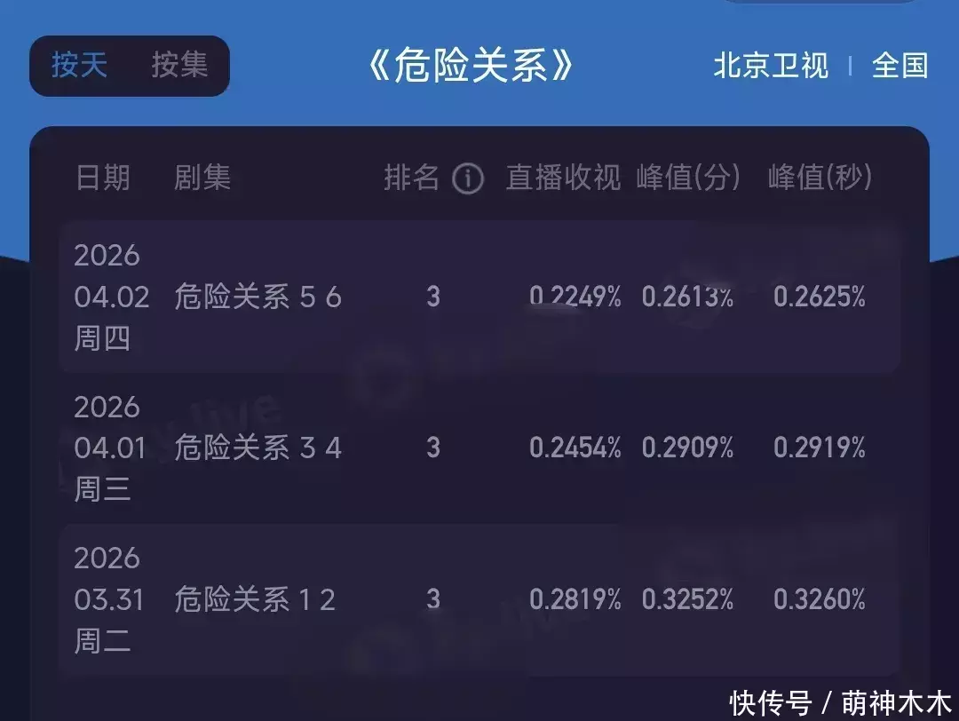 线下成绩方面,《危险关系》由东方、江苏和北京三大卫视上星播出。开播的时候收视率成绩还算不错,但是剧情却没能留住观众。三大卫视的收视率一天比一天低,该剧的收视成绩也是越来越差,实现了台网双扑街。