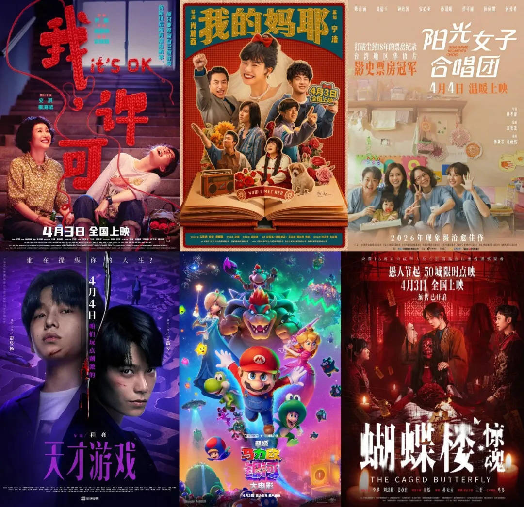 亲情题材成为本档期的主角,《我,许可》《我的妈耶》《阳光女子合唱团》三部亲情电影集结大银幕,诠释温暖治愈的力量。《天才游戏》《蝴蝶楼·惊魂》《午夜电梯》等悬疑惊悚类型片,则为观众带来高能刺激的感官体验。热门系列动画续作《超级马力欧银河大电影》也趣味来袭。